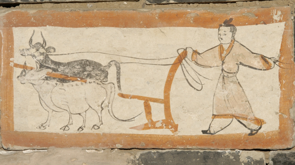 【讓文物“活”起來(lái)】磚上春耕圖,1600年前的農(nóng)事密碼我是1972年蘇醒的“春耕使者”,來(lái)自河西走廊,身上擁有墨線(xiàn)勾勒出的千年時(shí)光。一年之計(jì)在于春,鞭春牛是古人開(kāi)始春耕的活動(dòng)之一,農(nóng)人平整土地,種子從指縫間灑落,朱砂書(shū)寫(xiě)的“耕種”二字是魏晉先民寫(xiě)給大地的情書(shū),也藏著河西走廊最早的農(nóng)業(yè)密碼。魏晉十六國(guó)時(shí)期的先民們用繪畫(huà)技巧將現(xiàn)實(shí)生活的場(chǎng)景“搬”到了墓室的石磚上,建構(gòu)了一個(gè)“地下畫(huà)廊”。 | ||