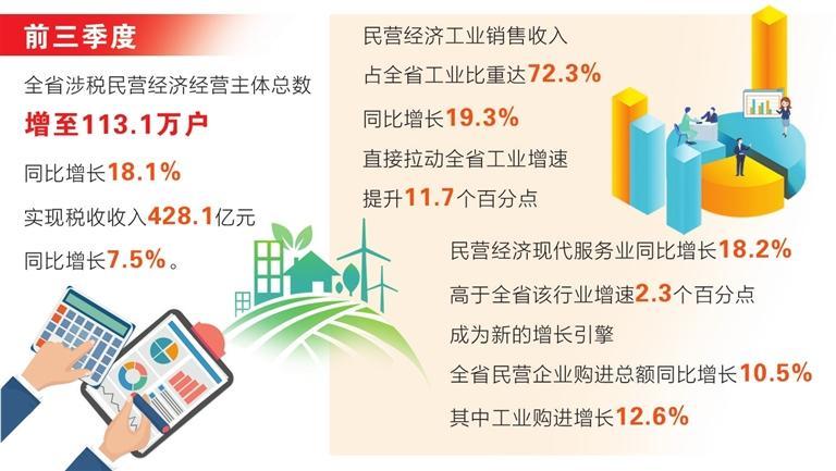 前三季度,民营经济工业销售收入占全省工业比重达72.3%,同比增长19.3%,直接拉动全省工业增速提升11.7个百分点。制造业表现突出,销售收入同比增长23.6%,占全省工业比重提升至56.3%,较上年同期提高5.8个百分点。显示出民营经济工业化进程持续加快,产业结构正加速向以制造业为核心的实体经济优化升级。
