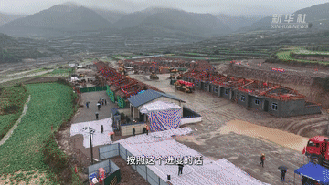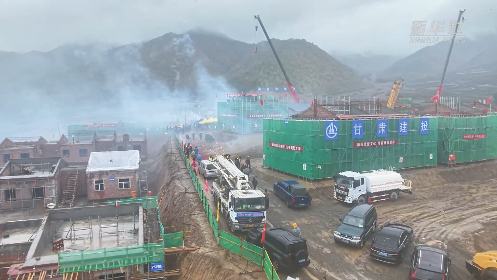 10月1日,细雨蒙蒙,甘肃省兰州市榆中县举行灾后重建集中安置点项目主体结构封顶仪式。6个安置点的集中安置房全面封顶,标志着当地灾后重建工作取得重要阶段性成果,为受灾群众早日重建家园、恢复正常生产生活奠定了坚实基础。