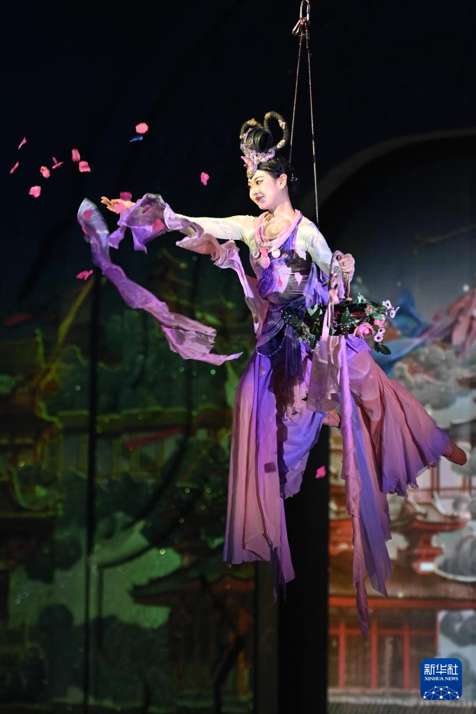10月12日,演员在《乐动敦煌》中表演。新华社记者 范培珅 摄